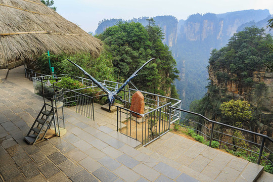 天下第一桥:“天下第一桥”是一天然石桥,位于张家界袁家界景区,处砂刀沟风景区一带,属张家界精华景点。大自然的鬼斧神工,将一块厚约4米的天然石板,横空“架”在两座山峰之上,把东西两峰连接。桥高350米,是张家界最高的石桥。此桥的高度、跨度和惊险均为天下罕见,故称“天下第一桥”。
