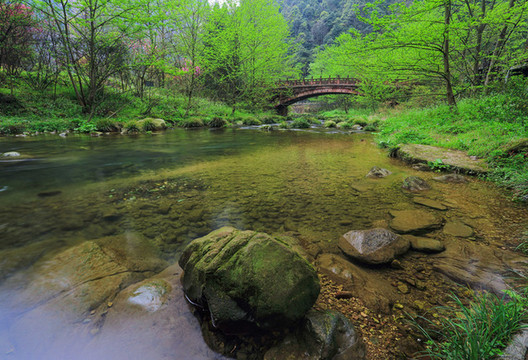 水绕四门:水绕四门地处武陵源中心,是张家界森林公园的东大门、索溪峪风景区的西大门。因金鞭溪、矿洞溪、鸳鸯溪、龙尾溪四条溪流在这块不足200平方米的山谷盆地里盘绕汇流而得名。置身其中,但见“水在山间流,人似水中游”,可称天下绝景。