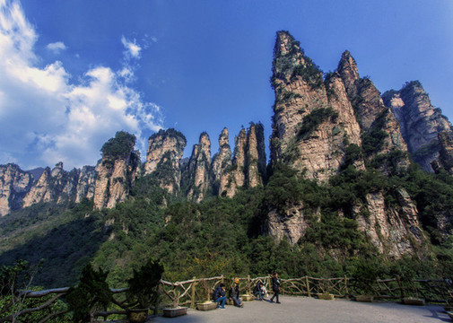 这里是张家界,天空增加了蓝色剂,没有一丝污浊