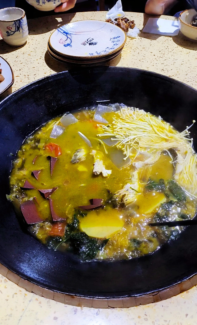 凤凰古城 的美食为数不多比较符合我口味的一家美食,做的柴火鱼很有特色,不能吃辣的,千万嘱咐不要太辣的汤底,清淡一些我觉得反而更好,我们吃的最清淡的汤,后面汤都喝了两大碗,这鱼汤确实,鱼肉也鲜嫩,当场杀的鱼,柴火煮,满满焖,真的很好吃,还有很多配菜,还点了其他两个菜,味道都很好,而且量很足,而且价格实惠,可以说这家店人均在凤凰景区最低一家,真的难得遇到这么好的餐厅!