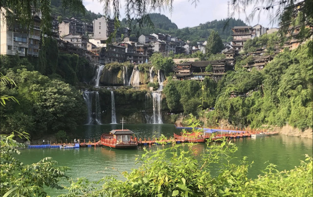 芙蓉镇 : 张家界 旅游结束后前往 芙蓉镇 ,是 湘西 的四 大名 镇之一,拥有两千多年的历史,被称为“悬挂在瀑布上的古镇”。需要坐船才能到达,因为时间有限,只能沿着外围小道走一圈,没能进到里头仔细参观。总体非常漂亮,从瀑布底下走过感觉很不错。这么漂亮的古镇夜景 应该更好。推荐!