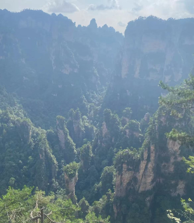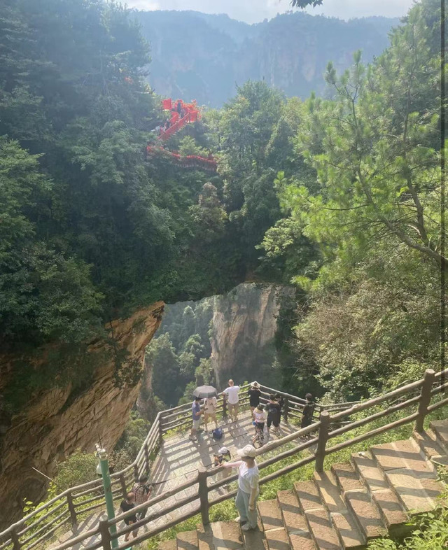 张家界 国家森林公园:我们从南门进出,因为住 武陵源 市区,这个门方便,园区有好多个门,相隔很远,由免费环保车连接。上行坐天子山索道,下行坐百龙天梯。中间都是环保车。没有怎么排队,就逛完了。照片里的景点都在车站步行几分钟的地方。老人小孩都可以到达。