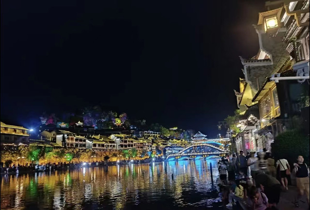 凤凰古城 :念叨了这么多年,总算来到这个半人造景点了,不用想,人暴多,到处都是拍照的,一身民族服装的反而是游客,沱江的水很好,好多小朋友都在岸边玩水,心心念念的石墩桥走的心惊胆颤,算了,我们反其道而行以,走另外一边,人很少,景色更为清晰,水幕电影和真人表演能让人安静的欣赏一下,坐着乌篷船,看看夜景,走走无人的石墩桥,别有风味