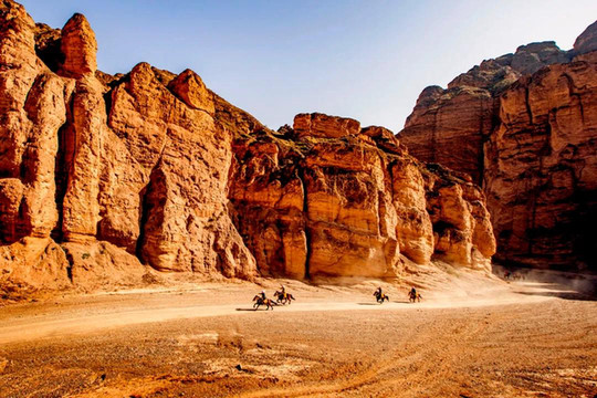 或策马而行,穿越峡谷。感受纵马扬鞭,一骑绝尘的潇洒。当然,安全第一,让专人牵着,换一个角度观赏石林奇峰也是很棒的。