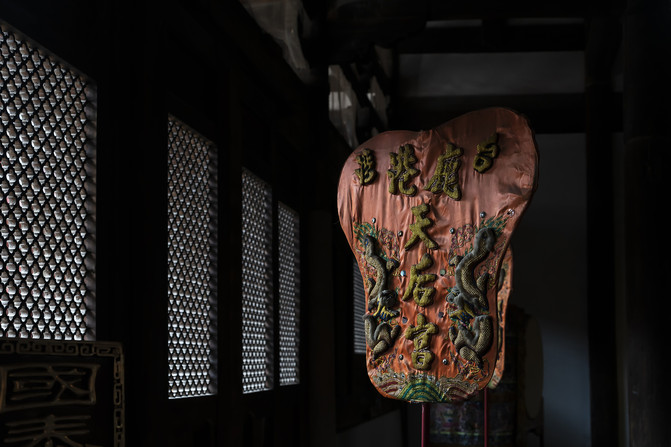 后殿里还摆放着一些祭祀妈祖时的仪仗,看看下面这把仪仗扇。