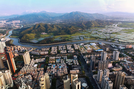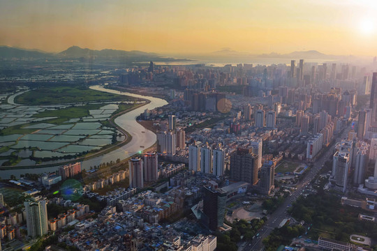 打飞的,越过深圳上空。眼前的一切,令人无限感慨——江湖远/走遍沧海桑田/ 今夕是何年?