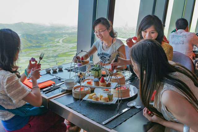 选择瑞吉酒店闲逸廊喝下午茶,最重要的不是秀恩爱,而是为了城市风。 在这里,风景完胜美食——老婆幽幽地说。虽然,她对这里的甜品超喜欢。