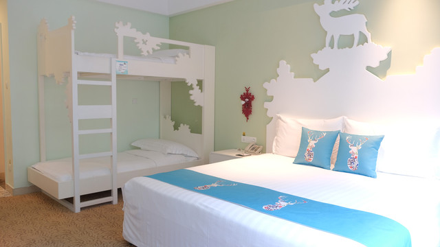 酒店的设计全部都像小朋友的梦想一样,有蔚蓝的泳池,清澈的池水在阳光照耀下好像一块蓝宝石,有童话中走出的咕咕钟,还有小朋友最喜欢的儿童乐园。一切都好像是从童话镇里走出来一样。