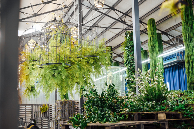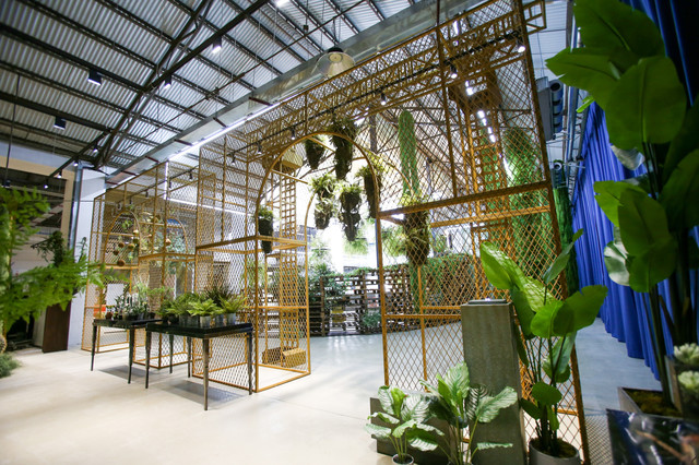 在花集的艺术展中,设计师以自然与空间的对话为源点,搬入大面积的绿植,打造了一个以花为媒的美学空间。