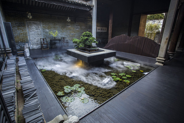 "一方养心居,静候有缘人"。客栈前身是一座已经有近两百年历史的老宅,现已成为当地古建筑民宿改造的杰出典范之作。走过悠悠长廊,就能达到清幽的客栈大堂,青砖碧瓦,雕梁绣户,古典音乐配上安神檀香,禅意十足。院落内简单地安置着一池水,千瓣莲,几只龟,还有一盏茶,这是一个关于精神生活的理想国。既能满足旅居的要求,更能体会素食、习茶、读书、安禅等禅文化,洗涤内心的尘嚣 。