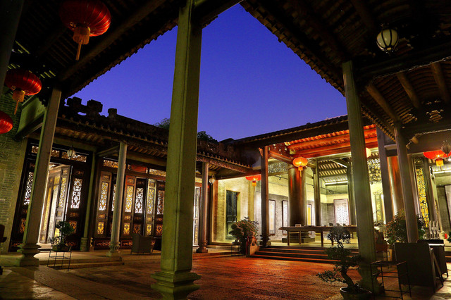 夜晚也可选择在此处落脚,在这里不止能领略现代美学,还能感知历经岁月、不可复制的岭南建筑文化。待到月没参横时,感受闹市中古村夜晚的静谧。