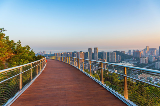 板樟山是珠海市内最高的山。在这里你能看到珠澳两地交汇的全貌以及景色最正的拱北,因此板樟山一直是珠海人登高爬山、拍摄珠澳夜景的首选。在珠海,看海有千百种角度,打卡一座山也有不止一种方式。你可以从金钟花园进入,经过长长的斜坡,到达森林公园的入口。