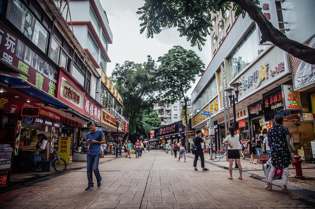 从壁画村导航步行十分钟便到达莲花路步行街,能看到街道周围交通便利,老字号美食店很多。据说这里曾是拱北夜里最繁华的街区,被誉为“南粤明珠龙眼”。然而时过境迁,行走在这条老街,随处可见街道上拆迁改造的字眼,不免一阵唏嘘,曾经的繁荣昌盛已经化作珠海人的旧时回忆。据说每个珠海人心中都有一条莲花路,虽然风光不再,但莲花路作为珠海城市文脉的延续,仍在见证这座城市的历史。