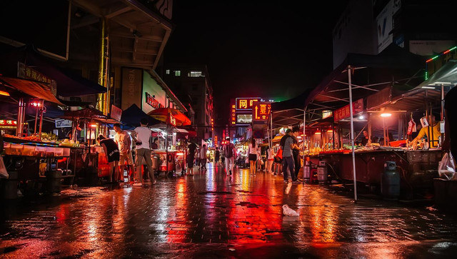 乘公交来到夏湾夜市,当一群小贩拉着拖车从四面八方赶来,街道上充斥着车轮与地面快速摩擦的声音后,美食街便准时开档。终于到了一天中最快乐的宵夜时间,然而这个夜市一点也没有让人失望,一定要尝尝这里烤得滋滋作响的生蚝和地道的冰冻糖水,乐山钵钵鸡和烧烤也极具地域风味。沿路望去全是汇集了天南地北的小吃,能看到火辣的烧烤,清淡的广东特色美食,两者相辅相成,为整条街增添了别样的味道。