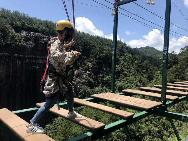 悬崖步步惊心 。步步惊心的刺激真的只有体验过的人才知道,低头是深谷险涧,直面万丈深渊!360度欣赏高空美景,体验云端漫步!