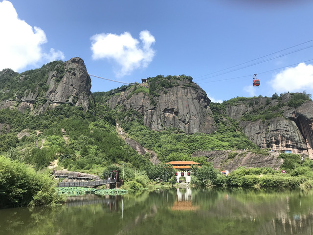 乘坐缆车向上到达玻璃桥,沿途可观赏百里丹霞盛景!看着远方的层峦迭嶂,迎着吹佛过来的微风。百里丹霞尽收眼底,这是全国发现的规模最大的白玉丹霞地貌群落。缆车时间约5分钟左右即到达玻璃桥景区。