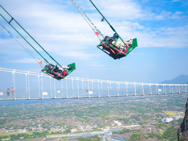 玻璃桥的旁边是极度刺激的悬崖秋千,悬空悠荡,迎风翱翔,坐上石牛寨惊心动魄的悬崖秋千,完全控制不住自己呐喊!
