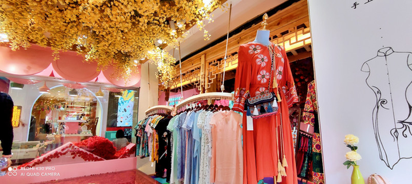 白天睡足后,漫步在古城的街道,古城里有很多好看、好玩还便宜的店铺,如段小雅的店。段小雅的店装修漂亮,有很多鲜花装饰,门口的花之舞台、花墙,可以在这里拍照打卡。店里有很多好看的衣服,有古典优雅的旗袍装,充满民族韵味的波西米亚,具有欧式田园风格的连衣裙……除了服装,还有各种包包、配饰等,这家店的彩妆也很好看,也可以自己做,店家提供道具和材料。来段小雅的店,要来体验一番彩妆制作!
