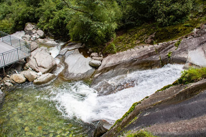 2、乘坐洗马潭大索道,七龙女池站下索道,经玉带云游路4.5千米,到达清碧溪。