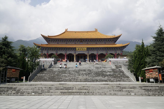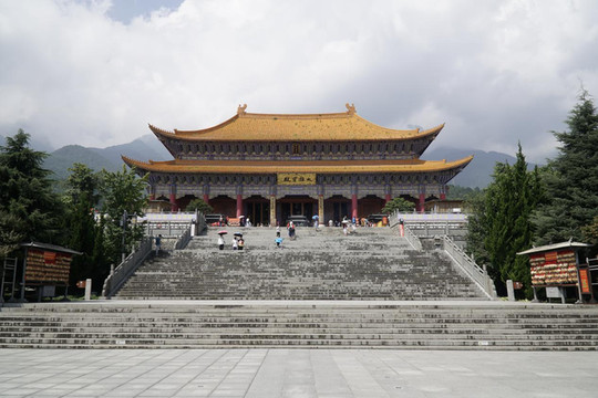 崇圣寺是汉式寺院,中轴对称,山门、钟鼓楼、天王殿、弥勒殿、药师殿、财神殿等一应俱全,布局也如汉式寺院。