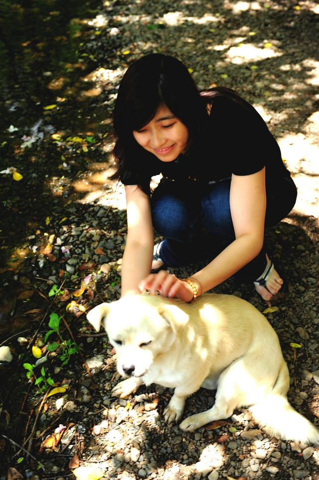 抬头可看澄净的天,低头可见狗狗趴在脚边。