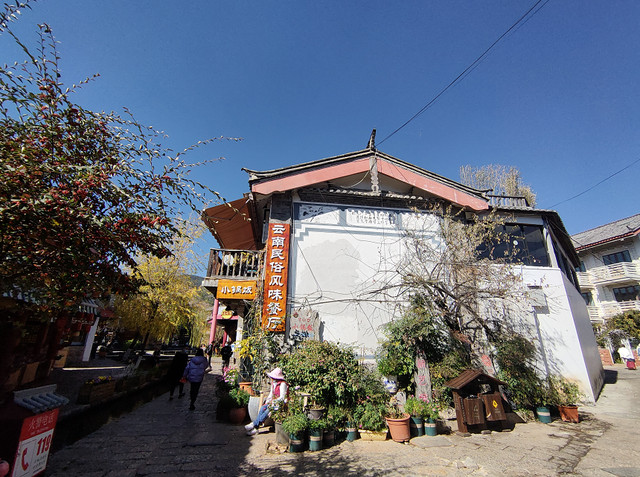第二天一早吃过昨天买的嘉华鲜花饼启程去了丽江另一个知名的古镇,束河古镇距离大研古镇(即丽江古城)大约6公里。相对大研古镇的喧闹,束河古镇相对于安静一些,或许是由于早上去得原因,游人很少,更多了看见了一些生活化的场面。