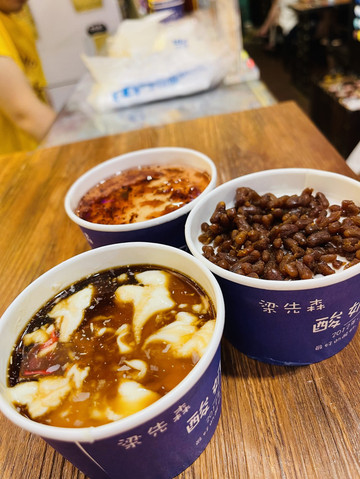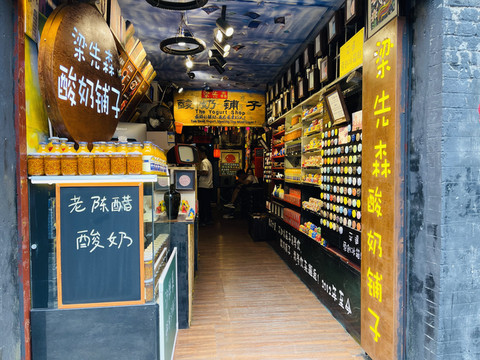在古城政府街和南大街交叉口,有一家叫梁先森酸奶铺子的炒酸奶店,古城里的酸奶店,也是相当有古城特色的店铺,很适合拍照打卡。店铺是门口摆放着沙棘汁的罐罐,他家的特色炒酸奶,便是沙棘汁炒酸奶,沙棘汁也是山西的特色,酸酸甜甜的。