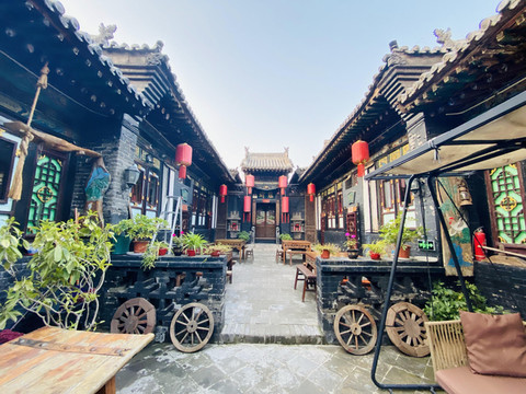 再抬眼看去,古老的瓦当,精雕细琢的门楼,虽然褪色但还不失鲜艳的木廊……仿佛一下子把你带回了百年以前,这种感觉真奇妙,斑驳的砖墙,印染出浅浅淡淡的哀伤;雕花的老窗,仿佛还是明清时温婉的模样,这不是景点,而是一家裕成源客栈,下午的院子里,独自坐在摇椅上晒一会太阳,听着屋檐上小鸟叽叽喳喳地叫,似乎推开门帘就能看到裹着三寸金莲的小姐正坐在炕上绣花。