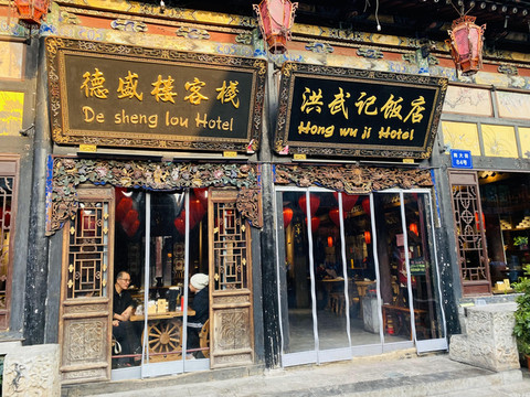 先从我们来到 平遥 的第一顿饭说起,去一个地方玩,一定要先常常哪里的特色,就像看人的第一印象一样,第一顿饭的选择也尤为重要。我们走在明清老街上,被一家餐馆吸引,台头一看招牌,大大的牌匾上写着【洪武记饭店】,霸气的名字,精致的环境吸引了我的注意,想起来之前好像在网上也看到过它的推荐,于是一拍大腿,就吃这家了。