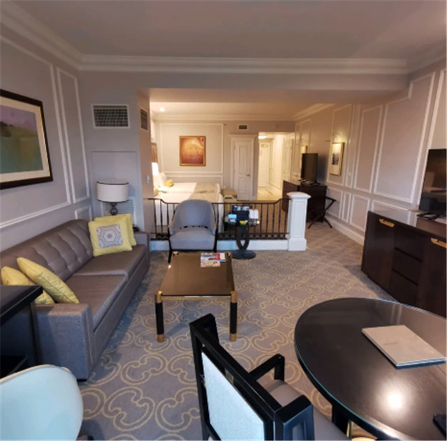 原本想要预订的是它家的奢华贝丽套房,但是没有空房了,于是就选择了这间豪华贝丽套房。这两间套房里面的配置其实差不多,都是两张特大床,有单独的客厅,卫浴室,不同的是房间的装饰风格。豪华贝丽套房充满着浪漫的意式风情,房间配色比较简约。