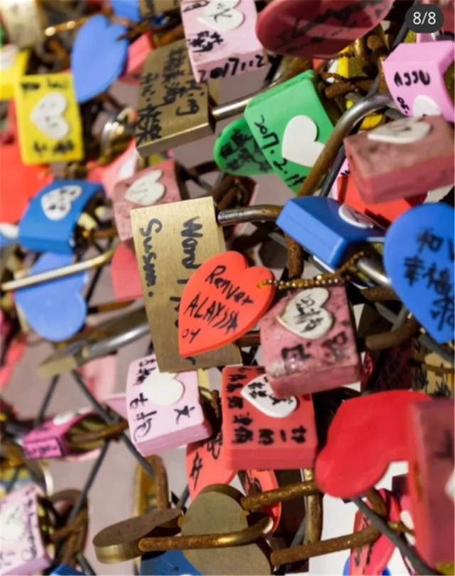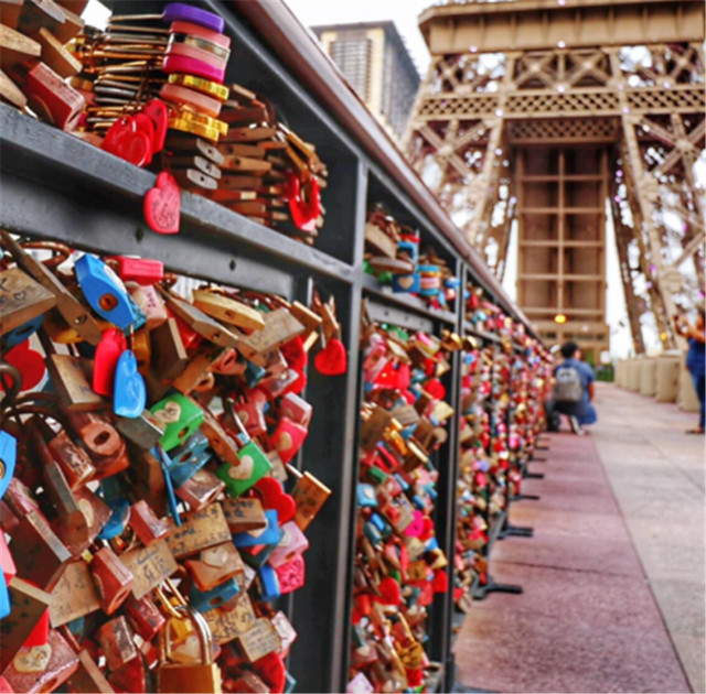 在巴黎铁塔的爱情锁桥上,不知道有多少对情侣许下海誓山盟。看着那一排花花绿绿的锁上写着各种动人的话,觉得太浪漫啦!
