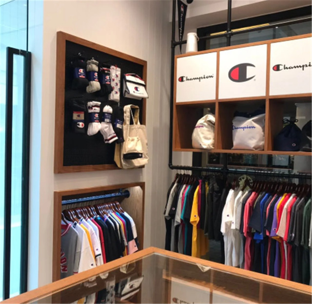 逛完鞋店,来看看服装店吧!Champion家的彩色短袖真的很显气色,穿上身活力满满!店铺面积不大,空间规划的很合理,纯白的砖块墙壁,颇有艺术感。
