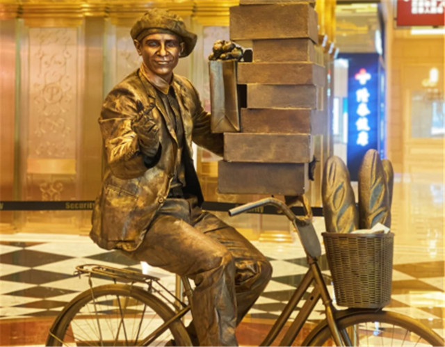 购物中心里会有艺术表演者,充满了法国街头的味道。接下来,你们猜猜这个骑车的人是真的还是假的呢?