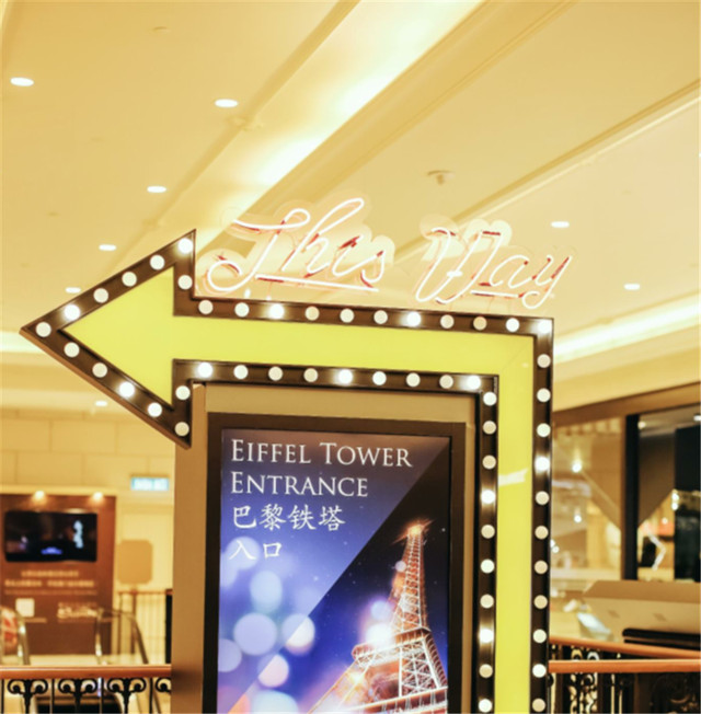 可以在巴黎人购物中心5楼的巴黎铁塔纪念品商店买票上巴黎铁塔,巴黎铁塔的入口处有个非常大的指示牌。在这里,建议方向感不好的朋友,可以下载一个金沙室内导航APP。有了它,你就可以在澳门金沙旗下的任何一家酒店和购物城邦里畅通无阻啦!