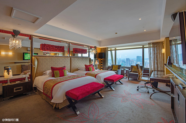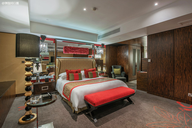 在寸土寸金的澳门,与一般酒店房间空间狭小压抑不同,新葡京酒店的客房在空间上毫不悭吝,而且设计别致,分区合理。室内空间整体配色以棕灰色和原木色为主基调,搭配上亮眼的红色或翡翠色点缀,碰撞出不寻常的尊贵之感,气派且耐看,整体给人以沉稳中不乏热烈的视觉感受。