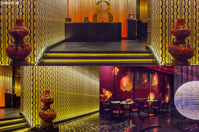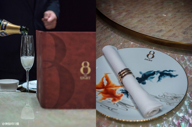 「8餐厅」主打精致点心及名贵新派粤菜,是连续七年荣获《米其林指南香港澳门》颁发三星荣誉的高级中国菜食府,餐厅设计精美绝伦,巧妙融合金鱼和「8」字等中国喜庆文化元素于设计之中,格调令人赏心悦目。