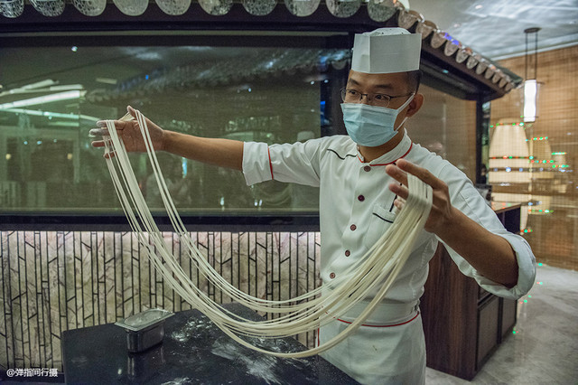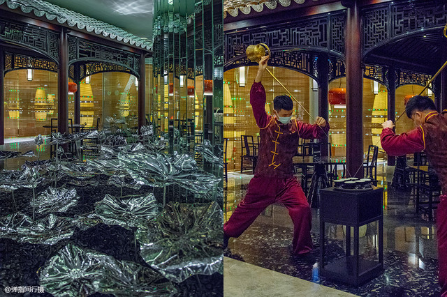 在同样24小时营业的日夜-粥面区,餐厅设计古色古香,亭廊别院,小桥荷塘,各种新式材料做成的造景,既新颖又传统,营造出温馨别致的就餐环境,还有来自中国内地的茶艺师傅和面点师傅现场展示茶艺秀和拉面功夫,趣味十足。