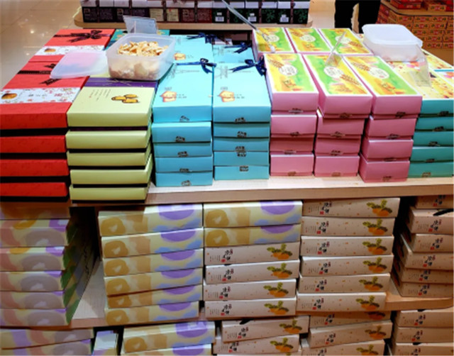 老妈挑东西挑到忘乎所以啦,还跟旁边的阿姨讨论哪一种产品更好吃,哈哈哈。在这里给大家推荐他家的蛋黄杏仁饼,雪花酥,猪肉脯也很不错哦!实在不知道买什么好的话,问店员小姐姐们,她们会热情地让你试吃每一款,看哪一种能征服你的味蕾。