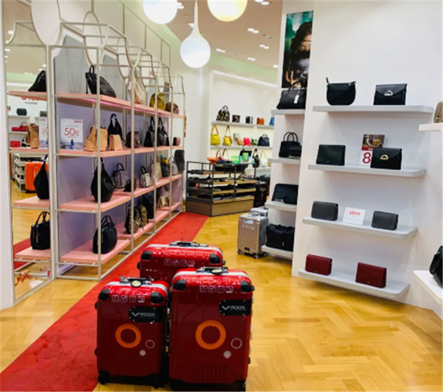 巴黎人购物中心的名店也不少,很多店铺都在做活动,花花绿绿的打折广告牌被放在门口,一些知名品牌店里人很多。我们去了一家人少的店,名字叫做ABRO+,位置在巴黎人购物中心五楼541号铺。店里主要卖包包的,全场手袋5折优惠哦!