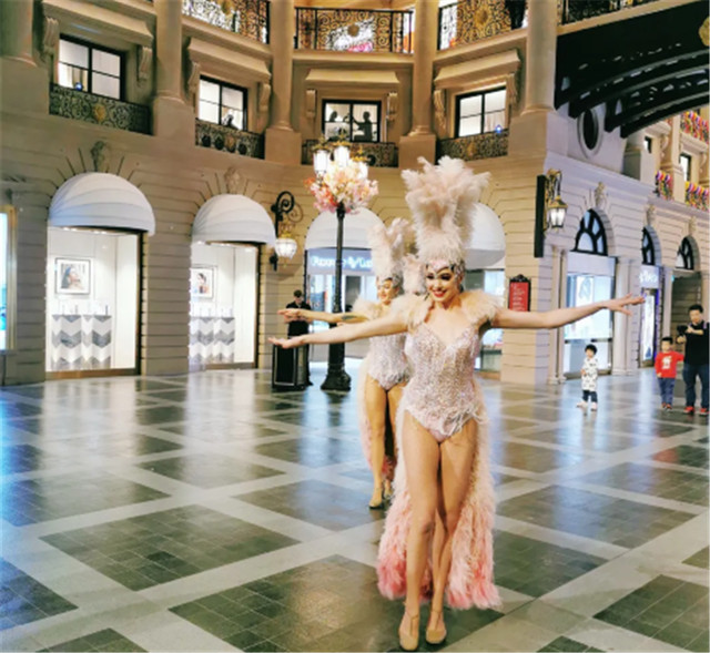巴黎人购物中心里面还有表演,这一双双大长腿看得我都自愧不如了!外国小姐姐太漂亮了,我儿子都不舍得走了,至于我老妈嘛,她就是走哪拍哪,哈哈哈!