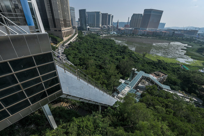 大潭山登山电梯是澳门第一个也是最高的登山电梯,从山脚下乘坐该电梯到达大潭山山顶大约30秒钟之内的时间即可到达,速度也算很快的了。在乘坐电梯的过程中,观景效果也是非常不错的,可以从低往高慢慢的升起的气势欣赏整个氹仔新城,将银河、威尼斯人、新濠天地、望德圣母湾、龙环葡韵等核心的景点尽收眼底,感觉是不是赞爆了?如果觉得很赞,以后来澳门记得来体验一下这个免费的大潭山登山电梯。