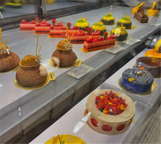 一进门就能闻见甜品面包的香味,让人口水直流。餐厅里有很多人正在享受精致的下午茶,餐桌之间的距离不远不近,就餐时不会被被隔壁交谈的声音干扰,体验感非常好。面包和甜品的种类很丰富,造型和摆盘也很有考究,非常上镜!