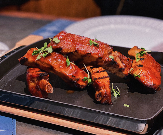 一顿英式晚餐让我和朋友彻底爱上了这家餐厅,点的每一道菜都实力与颜值并存。这家餐厅的招牌菜之一是这道焦糖烤排骨,肉质烤的很嫩,外皮有点酥脆。我和朋友直接用手拿着啃,大口吃肉的感觉可太幸福了。
