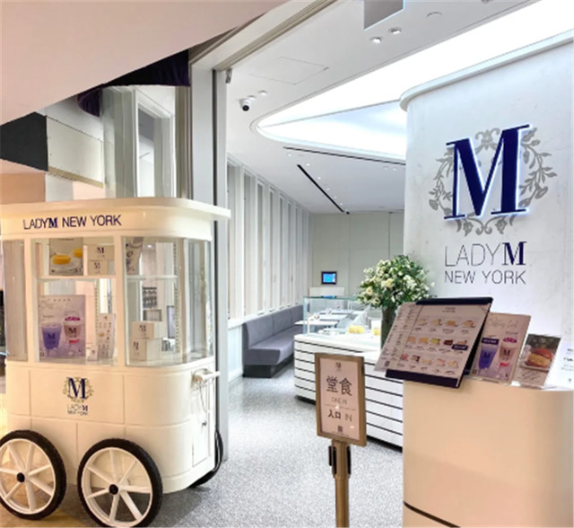 没有在丘吉尔餐厅享受到的下午茶,在Lady M如愿了。这是一家来自美国纽约的蛋糕品牌,朋友馋他家的千层馋了好久了。店铺就在伦敦人购物中心2楼,不需要排队的哦,直接进去点餐。