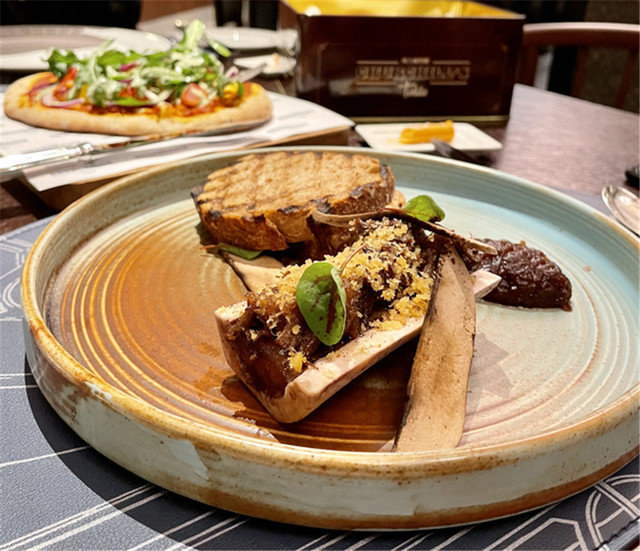 披萨和焗牛骨髓,味道都不赖,就是牛骨髓有点肥,不过我朋友爱吃,照样光盘了,哈哈哈。