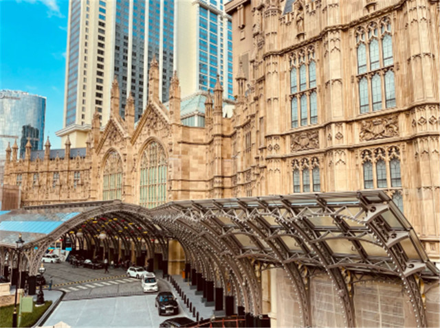 澳门伦敦人酒店外观是哥特式建筑风格,可惜的是,我们去的时候酒店门口的大笨钟还没有完全竣工,看来回头还得再二刷一下这家酒店。伦敦人酒店在今年1月份就正式开业了,成为了澳门的又一新地标。