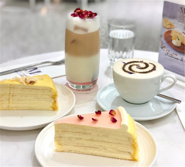 水晶玫瑰千层蛋糕和玫瑰花茶是完美的套餐选择哦,浓郁的奶香味带有清淡的玫瑰花茶,不太吃甜食的朋友正好用它来解解蛋糕的腻。