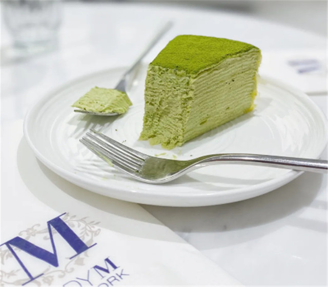 我们各自消灭了自己点的食物后,觉得吃得不够过瘾,两个人又点了一块抹茶千层,你一勺我一勺,很快就光盘啦。