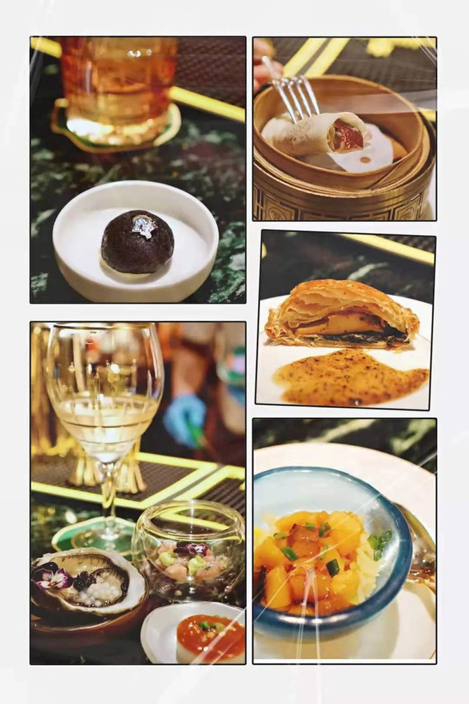 在华庭酒吧里面,除了所有的酒喝不完之外,这里的食物也是吃不完的感觉,只要人没离开,食物源源不断提供,从前菜生蚝、鹅肝、鱼子酱、煎带子,到主菜惠灵顿鲍鱼、片皮鸭,到主食的海鲜炒饭,最后还有甜品小cake都一应俱全。每一份小而精致的菜品,真的像吃了一顿fine dining。