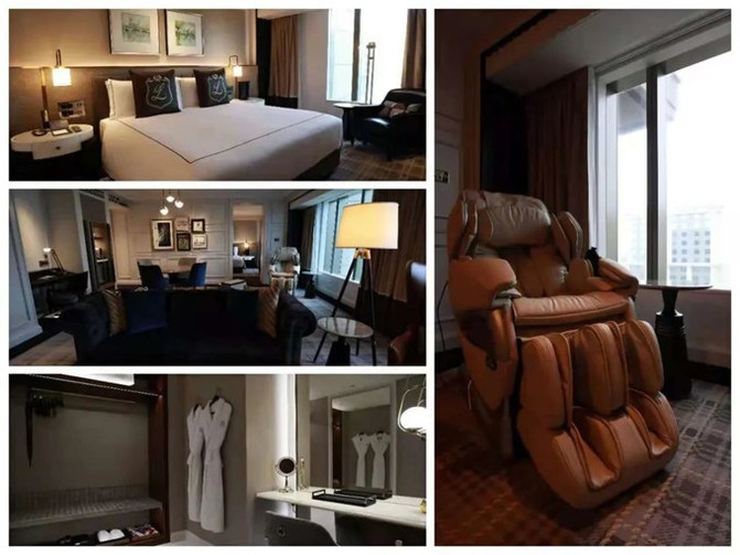 后来我还八卦参观了更高一级的温莎套房。冠上英国皇家国姓是比较不一样,那个真皮全身按摩椅真的击中我了!浴缸前还有和客厅一样大的超级满墙电视,真的要这么会玩吗?